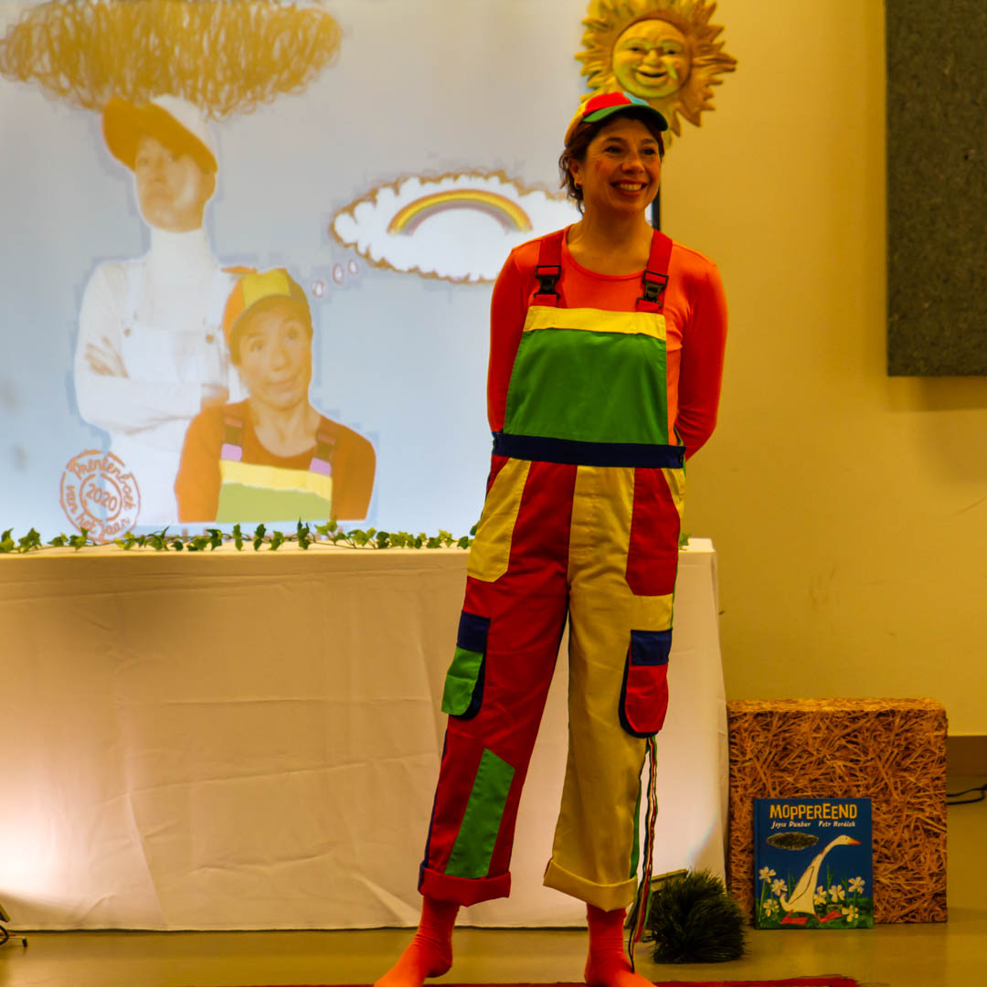 Een interactieve vertelvoorstelling rond emoties en kleuren naar het prentenboek “Moppereend” 30 minuten